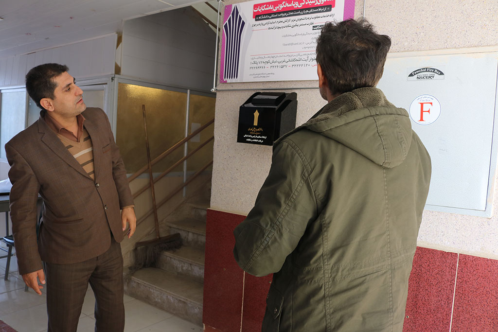 به همین منظور و به صورت نمادین اولین صندوق رسیدگی و پاسخگویی به شکایات روز چهارشنبه مورخ 27/10/96 با حضور دکتر براتی رئیس واحد استانی دانشگاه ، معاونین و جمعی از همکاران در مرکز آموزش علمی کاربردی انجمن جوشکاری (علامه) نصب و رونمایی گردید. در این برنامه دکتر براتی ضمن تبیین این فعالیت ضرورت تعامل بیشتر بین اجزا و نیروها خصوصاً دانشجویان را با واحدهای ستادی مورد تأکید قرار دادند و نصب این صندوق را به منظور بهبود ارتباط و شفاف سازی فعالیت ها و استمرار در اصلاح امور از نتایج این فعالیت برشمردند.