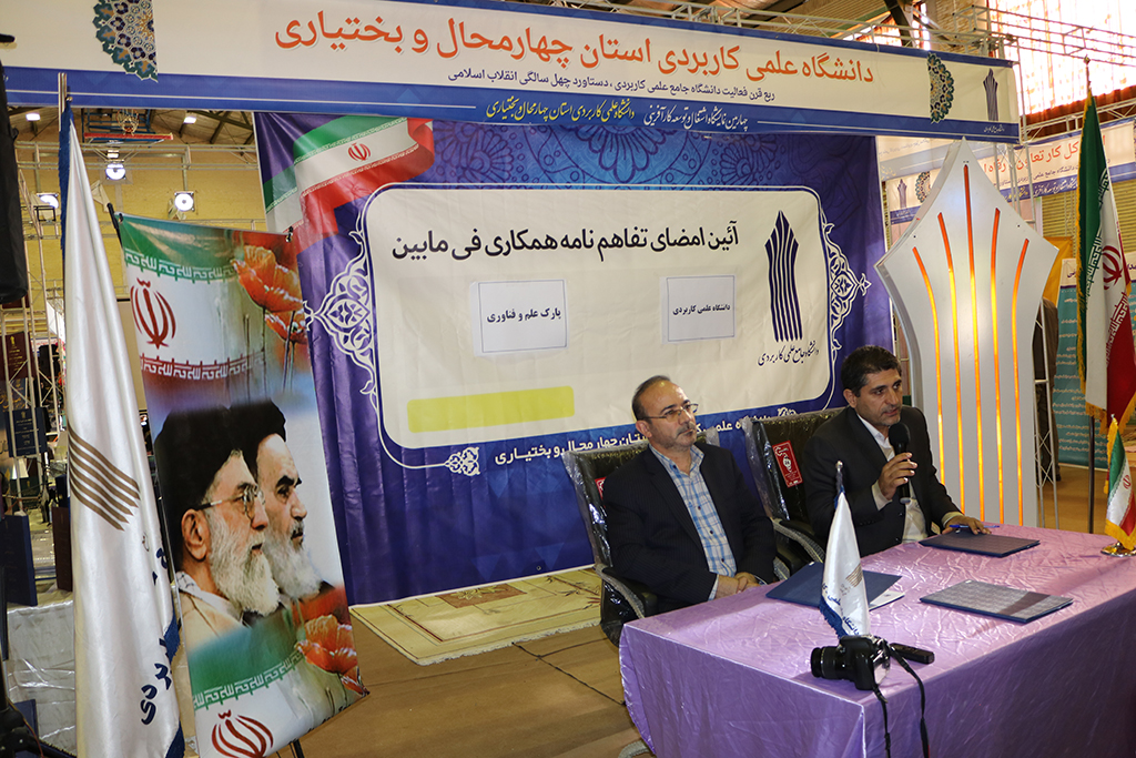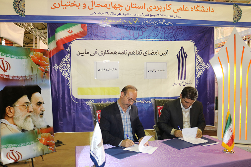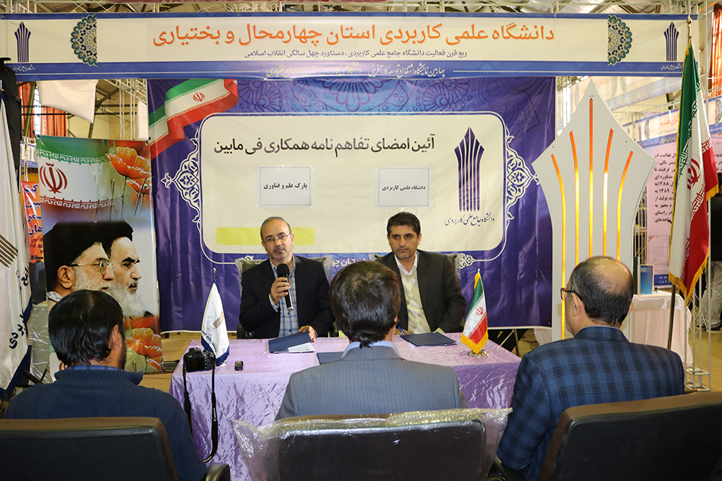 در نشست مشترک همزمان با برگزاری چهارمین نمایشگاه اشتغال و توسعه کارآفرینی ، تفاهم نامه همکاری بین دانشگاه علمی کاربردی استان چهارمحال و بختیاری و پارک علم و فناوری استان منعقد شد .