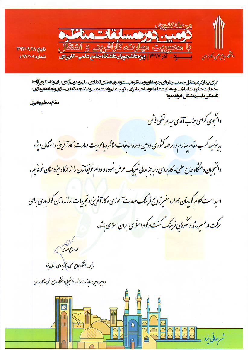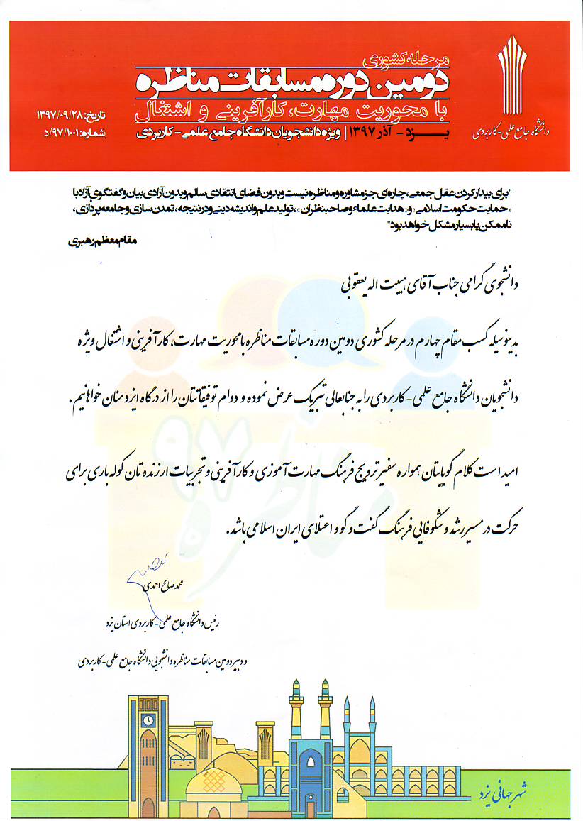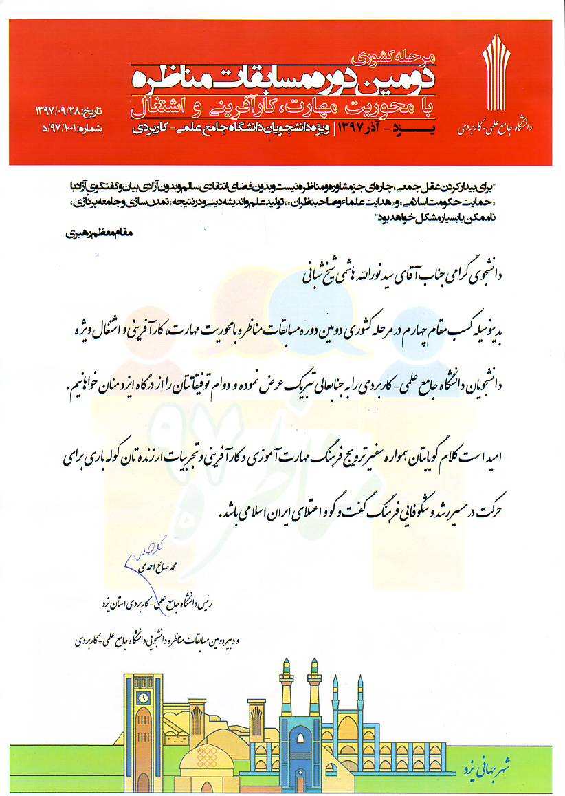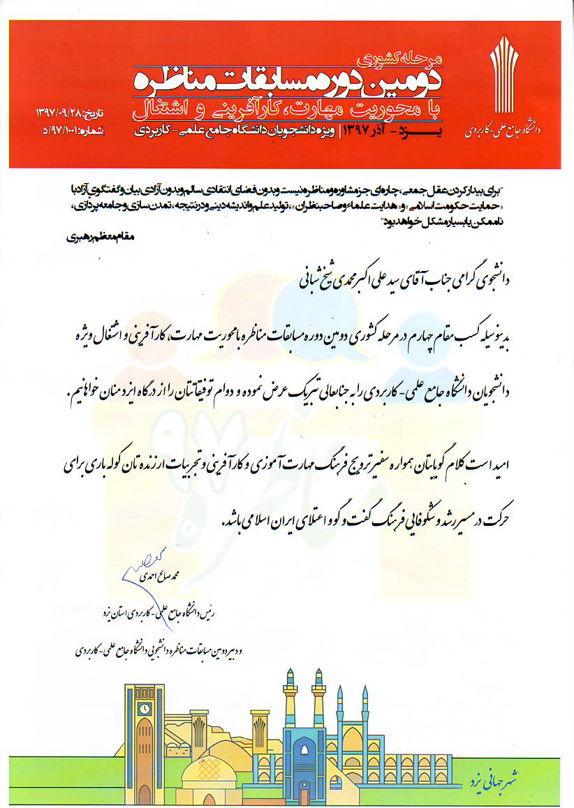 کسب مقام چهارم کشوری در دومین دوره مسابقات مناظره دانشجویی توسط مرکز آموزش علمی کاربردی نیروی انتظامی استان چهارمحال و بختیاری