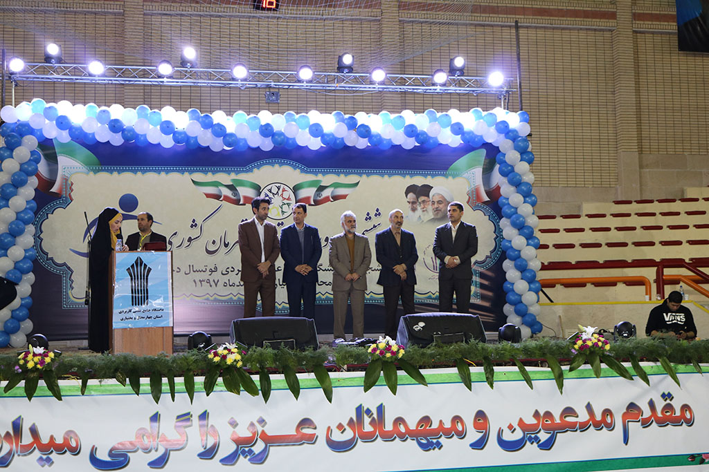 به گزارش روابط عمومی دانشگاه علمی کاربردی استان چهارمحال و بختیاری :صبح امروز چهارشنبه ۱۵ اسفند ۹۷ ششمین دوره مسابقات قهرمان کشوری فوتسال دختران دانشگاه جامع علمی کاربری با حضور محمدحسین امید رئیس دانشگاه جامع علمی کاربردی ، فرید براتی ، رئیس دانشگاه علمی کاربردی استان، اردشیر نوریان ، نماینده مرم شهرستان های شهرکرد، بن و سامان در مجلس شورای اسلامی ، نورالله غلامیان ، شهردار شهرکرد ، جمعی از مسئولین استانی ، مدیران ، اساتید ،کارکنان و دانشجویان دانشگاه علمی کاربردی و مراکز آموزشی در شهرکرد آغاز شد.