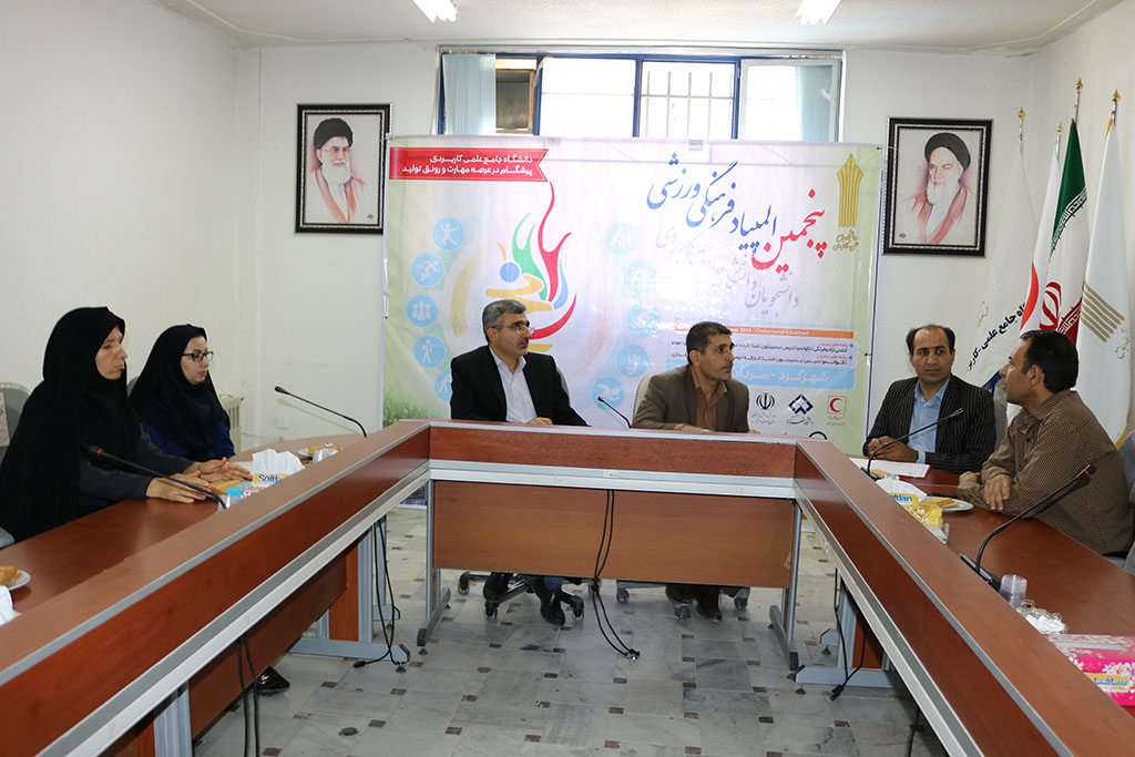 به گزارش روابط عمومی دانشگاه علمی کاربردی استان چهارمحال و بختیاری : با توجه به لزوم برنامه ریزی و انجام هماهنگی های لازم با هیأت های ورزشی استان جهت برگزاری پنجمین المپیاد فرهنگی ورزشی دانشجویان دانشگاه جامع علمی کاربردی ، نشست مشترک رئیس دانشگاه علمی کاربردی استان و رئیس هیأت تنیس روی میز استان روز سه شنبه مورخ 21/03/98 با حضورمسئولین دو طرف ، مسئول کمیته برنامه ریزی و امور اجرایی هیأت تنیس استان و رئیس اداره دانشجویی فرهنگی دانشگاه و سایر همکاران در محل سالن جلسات واحد استانی دانشگاه برگزار شد .