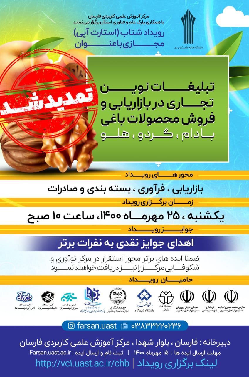این رویداد مورخ 06/07/1400 به صورت مجازی برگزار گردید . و 3 ایده برتر جهت حمایت و پذیرش ایده به شرح زیر انتخاب شدند: